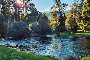 ✅ Views of Mt Donna Buang; terraced garden with mature trees and year-round blooms